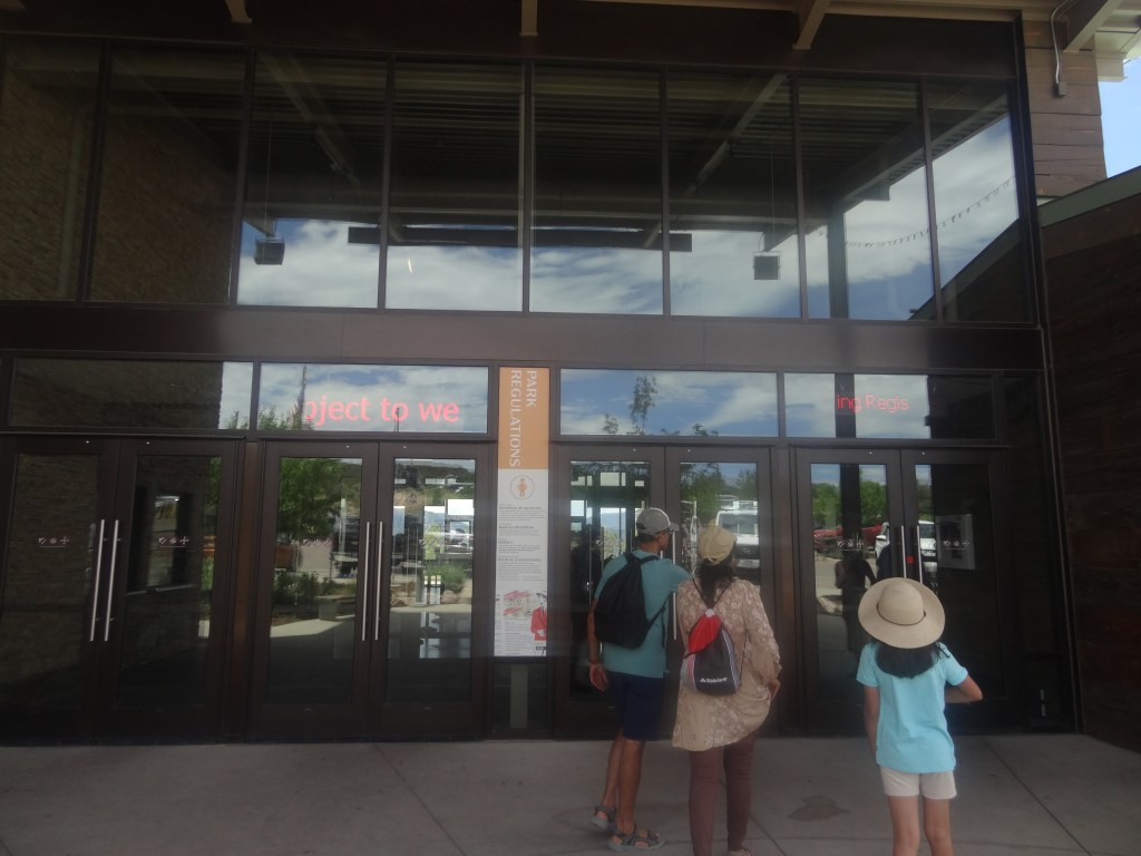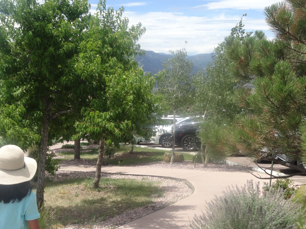 Finding parking was pretty hard that hour, but luckily after spotting a parking spot close by, we hopped out of the car to stretch our legs and walked on towards the visitor center. There was a nice walkway through a small garden to get from the parking lot to the visitor center so that everyone could safely arrive.