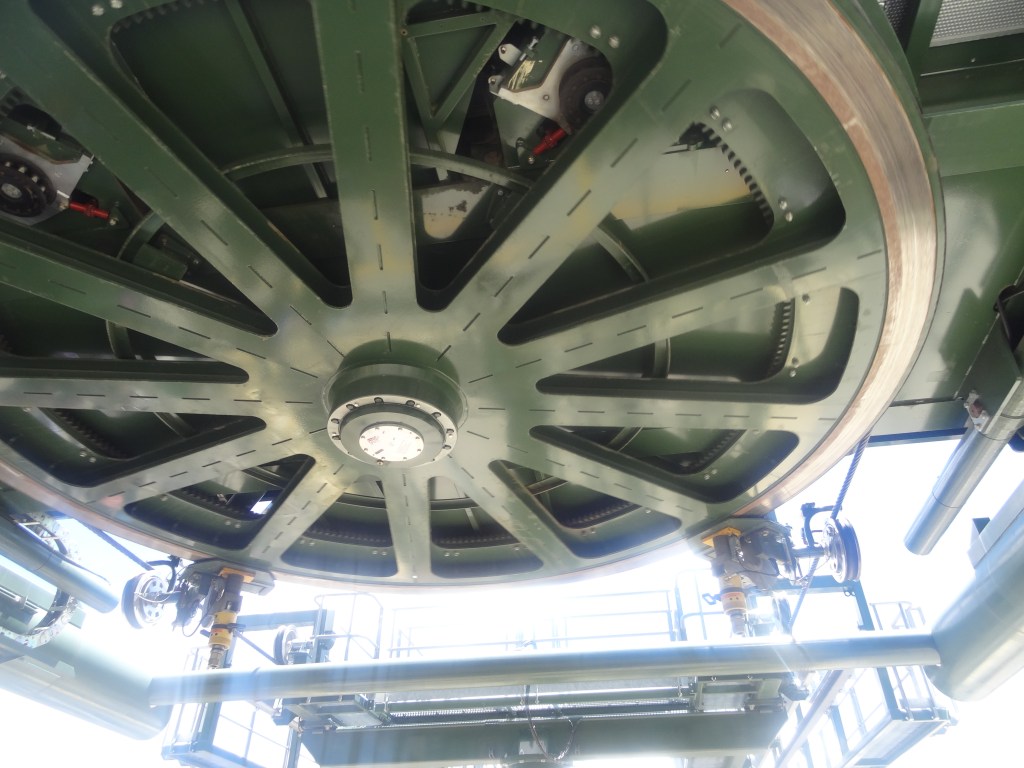 The closest thing near us as per our plan was the Gondola, so we got into the ever-so-long line of people that were waiting to get into one. Two gondolas were going back and forth, with 3 cabins in each. A full gondola carried around 24 people (8 per cabin). You could see how the gondola worked too! Above the lines of people, there was a huge gear-like wheel powered by an engine that spun the wire, pulling the gondola coming to us and sending the other one away. To pull it back, it rotated in the opposite direction. After waiting for around 20 minutes in line, we finally reached the front to stand ready for our gondola to arrive.