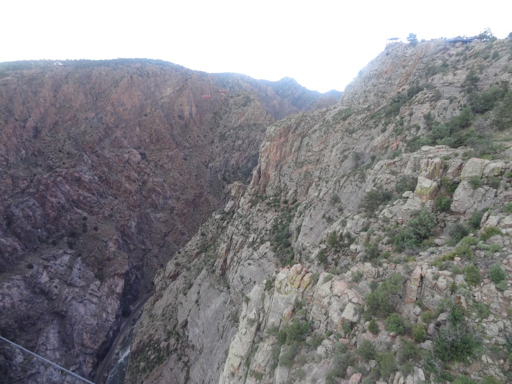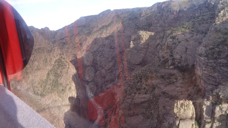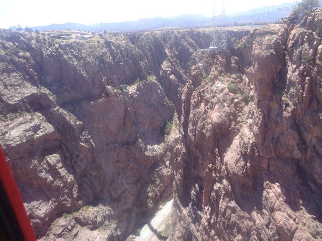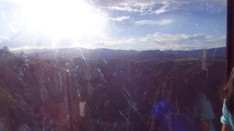 Once it arrived, we were put in the last cabin with 4 others who also came to visit Colorado. The machine started slowly, and you could hear the creaks of the metals clanging to move together. And in a few seconds, we were over the air, practically flying inside a box! The views of the Royal were so clear and so gorgeous! Every crack and layer of sediment in the reddish rocks to the turquoise covered with foaming white of the roaring Arkansas River below was a marvel to our eyes. The bridge and a few zipliners flying past were parallel to us, and words were too short to describe the amazing views.