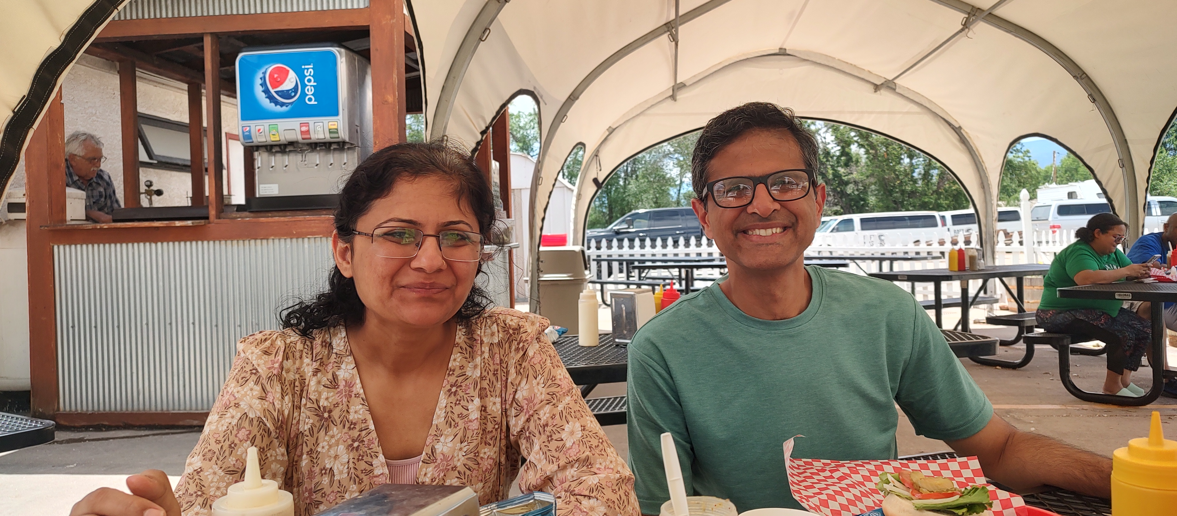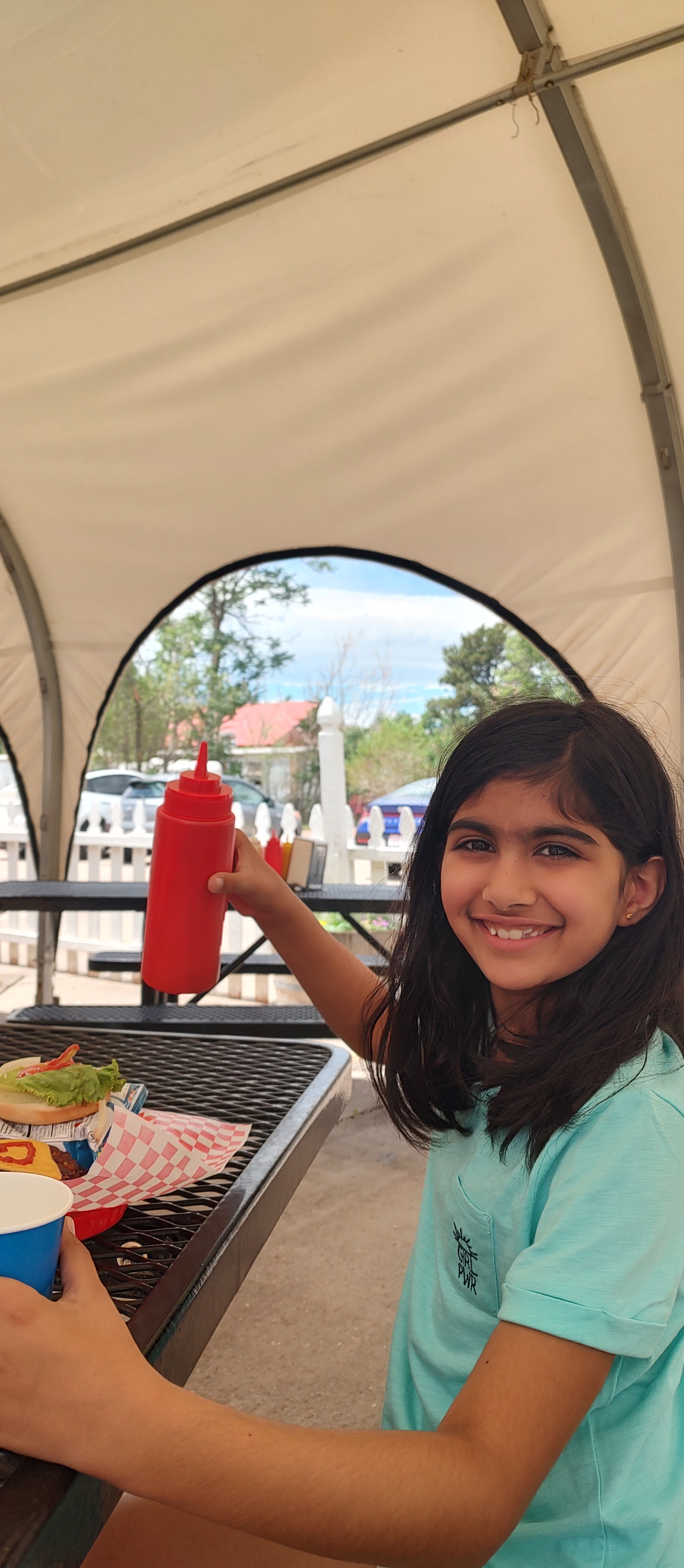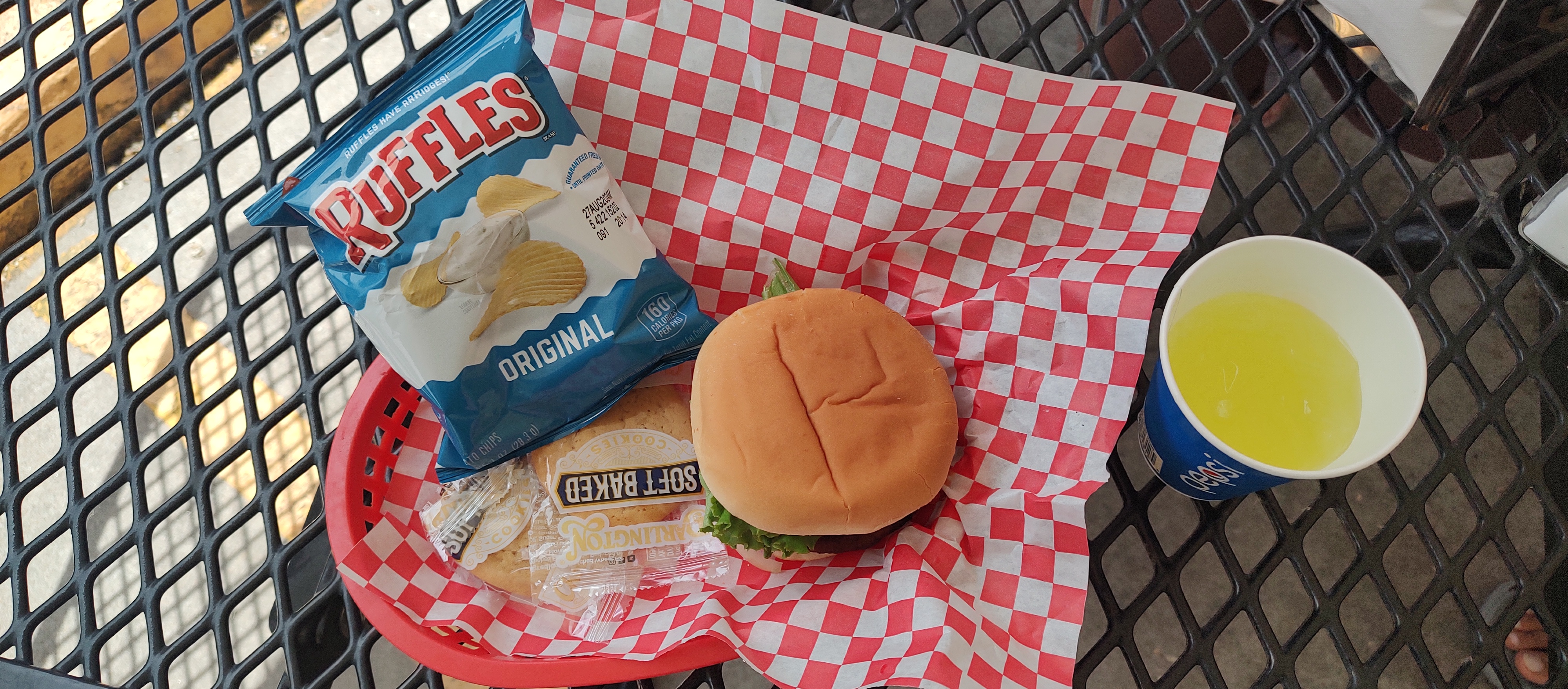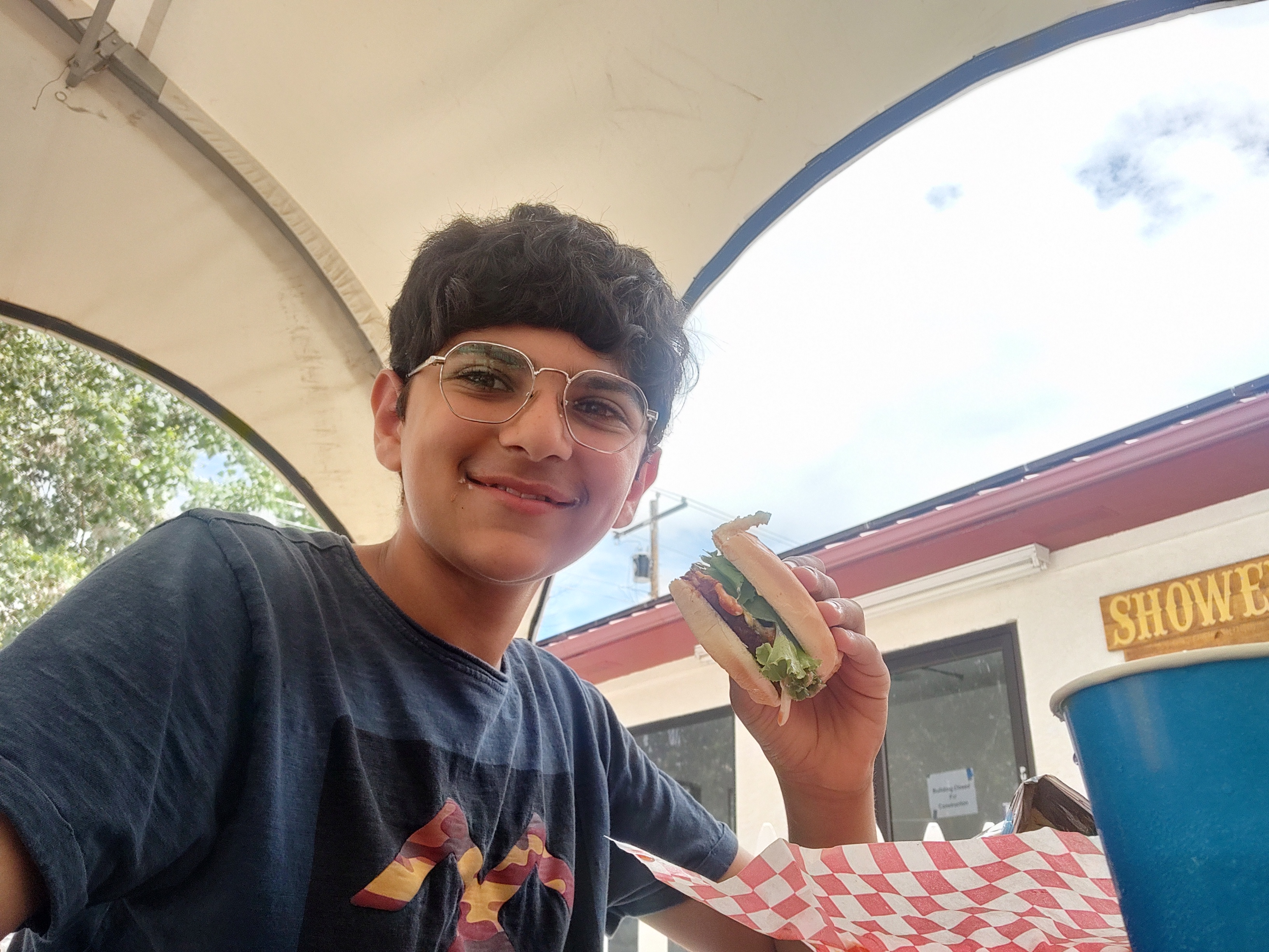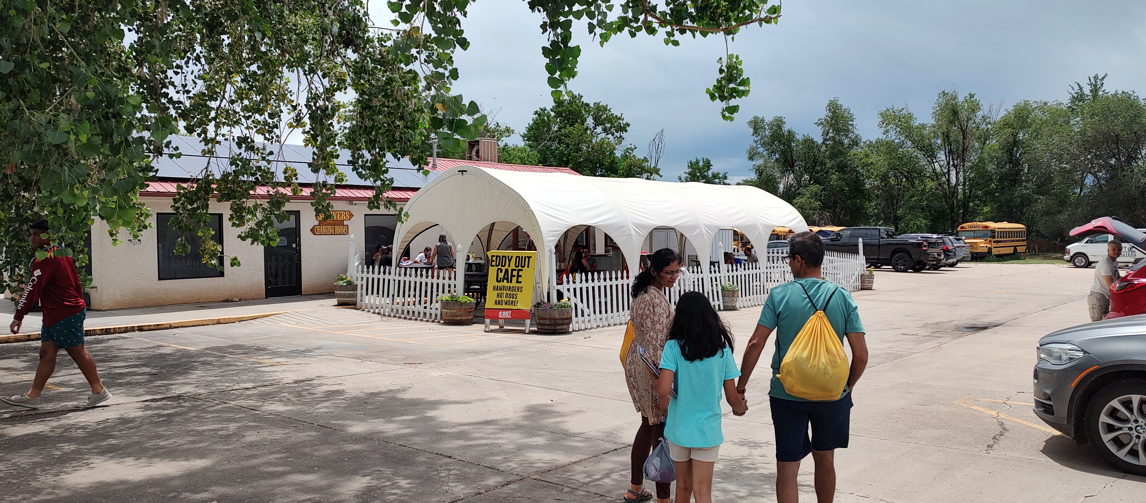 On the bus ride back, Lydia, the lead guide, pointed out some more attractions of Canon City for us to visit after we reached the office. Finally arriving, we caught up with Noah for pictures and then changed. After tipping Noah and saying goodbye to our new friends from Connecticut, we headed off for a complimentary lunch provided by Raft Masters at their Eddy’s Out Cafe. We had tickets that showed that we were from Raft Masters that we gave the chefs there. Asking for veggie burgers (we’re vegetarian) the cook there said “Nope, $5. Just kidding.” and told us that we were free to grab drinks while we waited for our burgers. A couple minutes later came fresh and hot burgers with a chip bag and a cookie. Everyone else got 1, but somehow, I got 2 cookies. Probably as a reward for being daring on the ride.