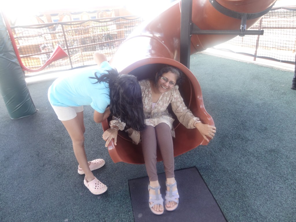 Arriving at Tommy Knocker Playland, it was time to jump around and have some fun in the little adventure park. We got onto the carousel first and had a small fun ride. Once it ended, my sister was nowhere to be seen! Turns out, she ran up to the playscapes to have some climbing fun. My parents and I followed and started following my sister up the playscapes. It was a fun family experience to run, climb, and jump around in the playscapes.