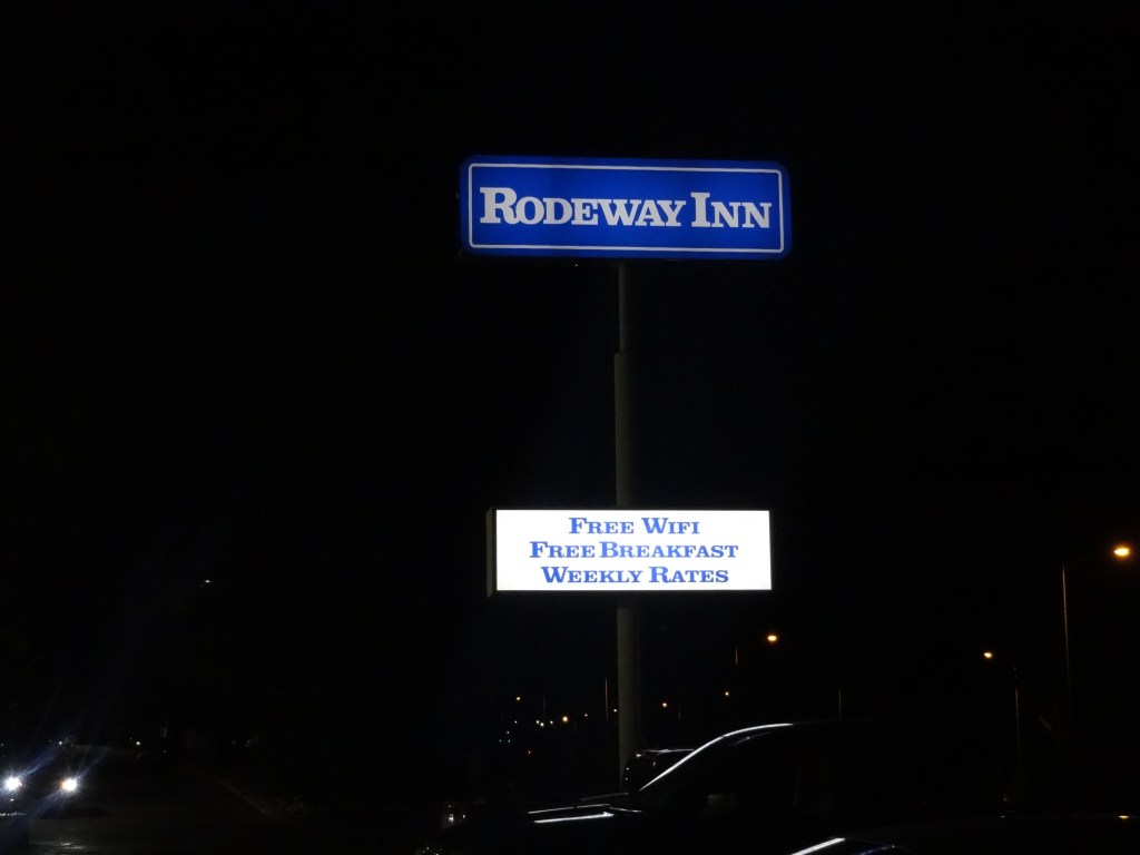 Here’s what we saw on the drive to our hotel, Rodeway Inn: