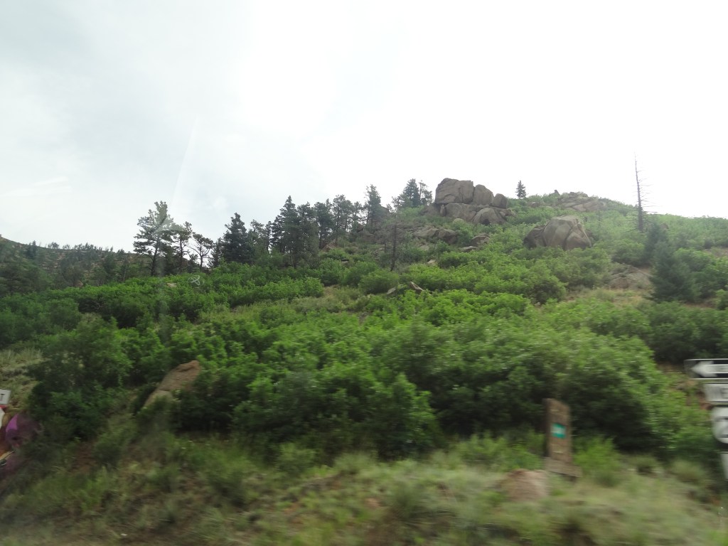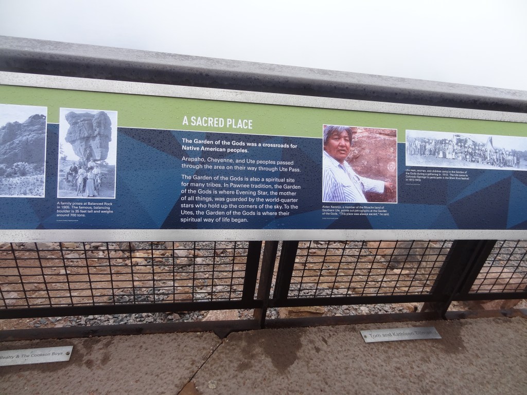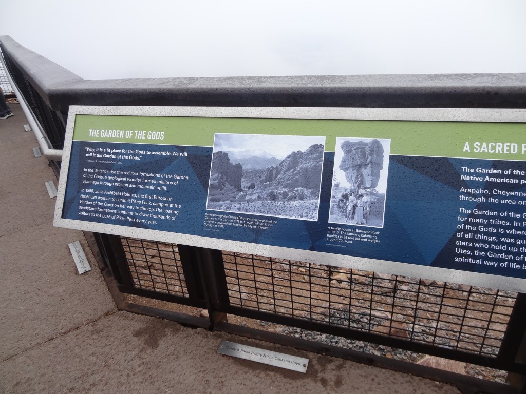 We saw various native flowers in the garden of the visitor center, named the Rocky Mountain Garden, and read over various viewing insights, naming peaks and formations we saw. You could see Pikes Peak, and clearly name the Kissing Camels Formations.