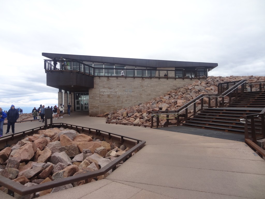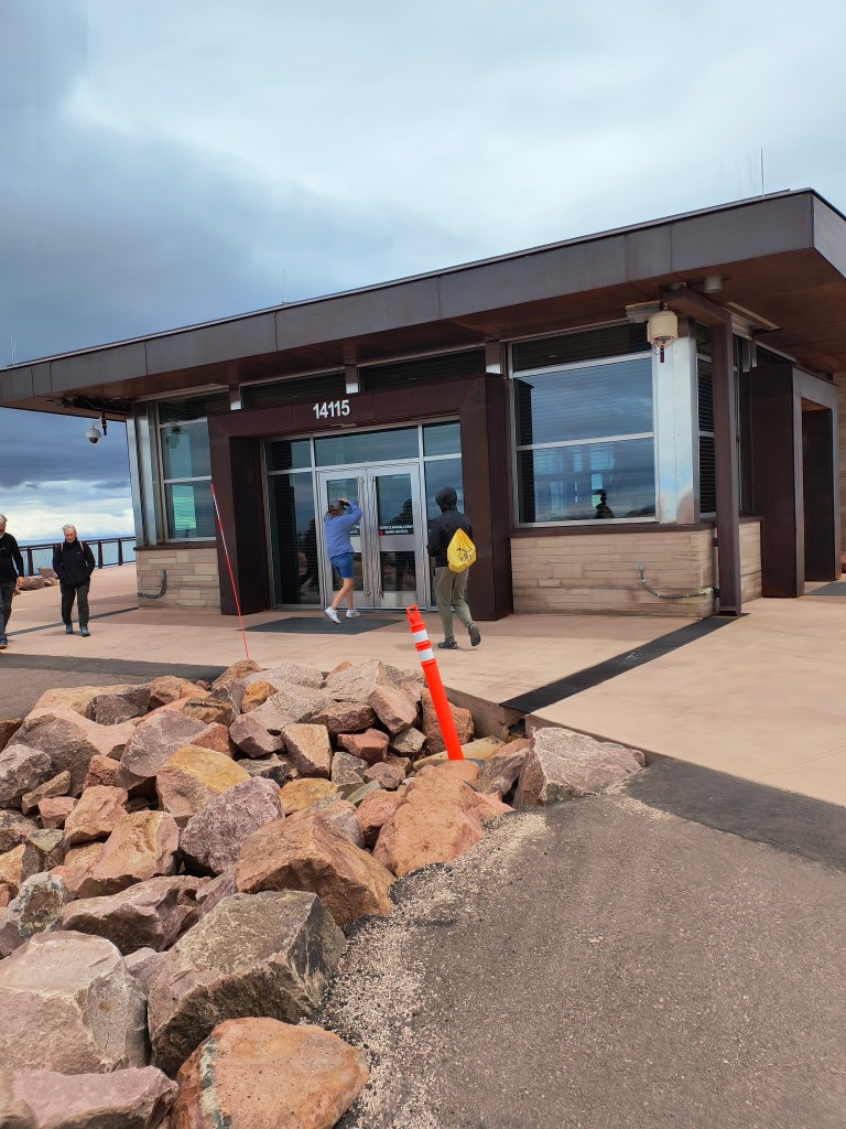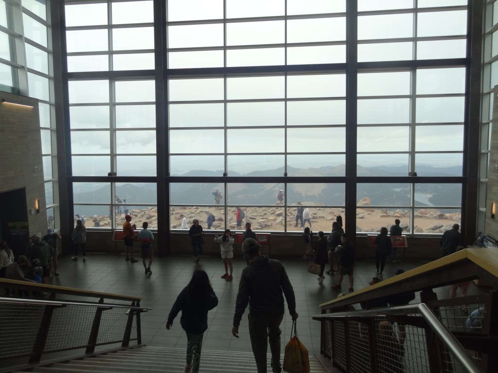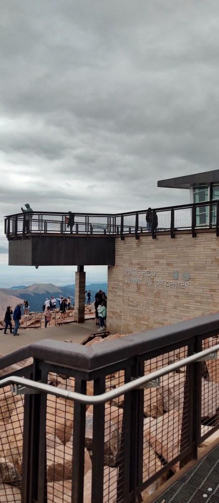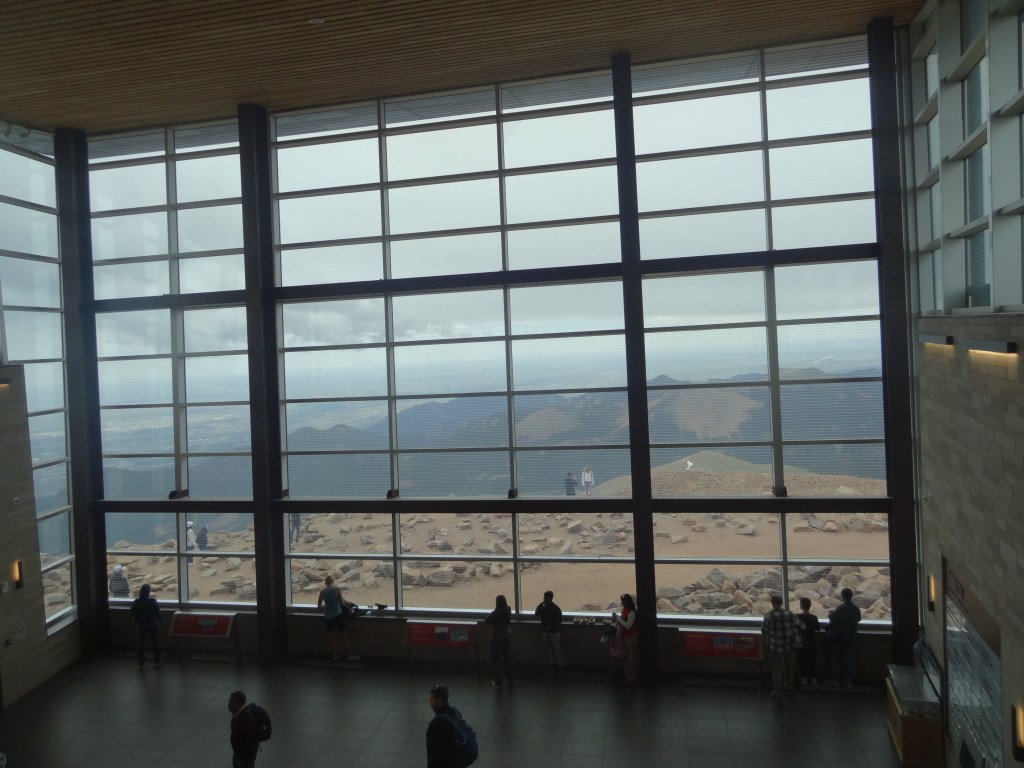 The higher we went, the more the road began to weave too. I don’t know how, but Sara got us to the summit in 30-40 minutes. We made it. The summit of Pikes Peak, yep, we made it! The visitor center welcomed all arriving to the top. A sudden surge of cold air met us as we got off the bus, thanking Sara. Luckily, I had a winter jacket on me, so I didn’t really feel anything other than chilly air on my face. We swiftly walked inside, to the warm but vast visitor center.