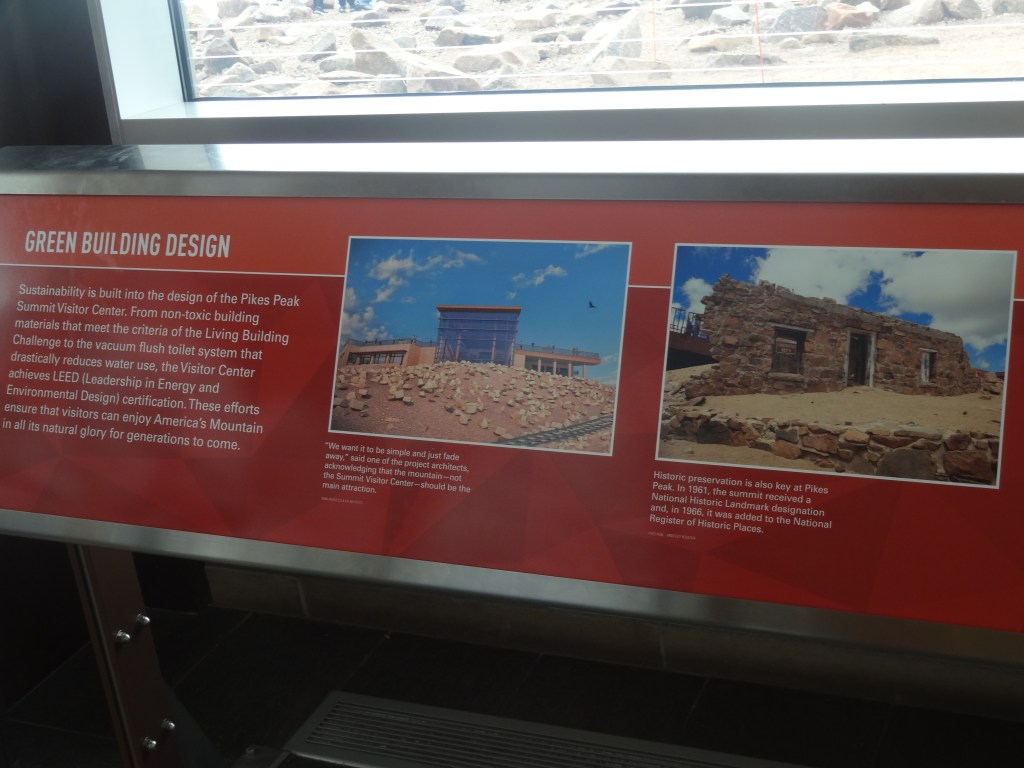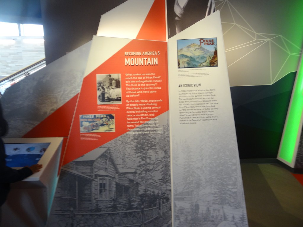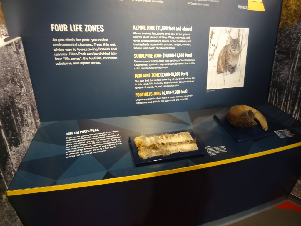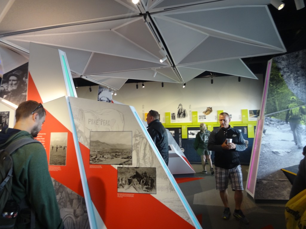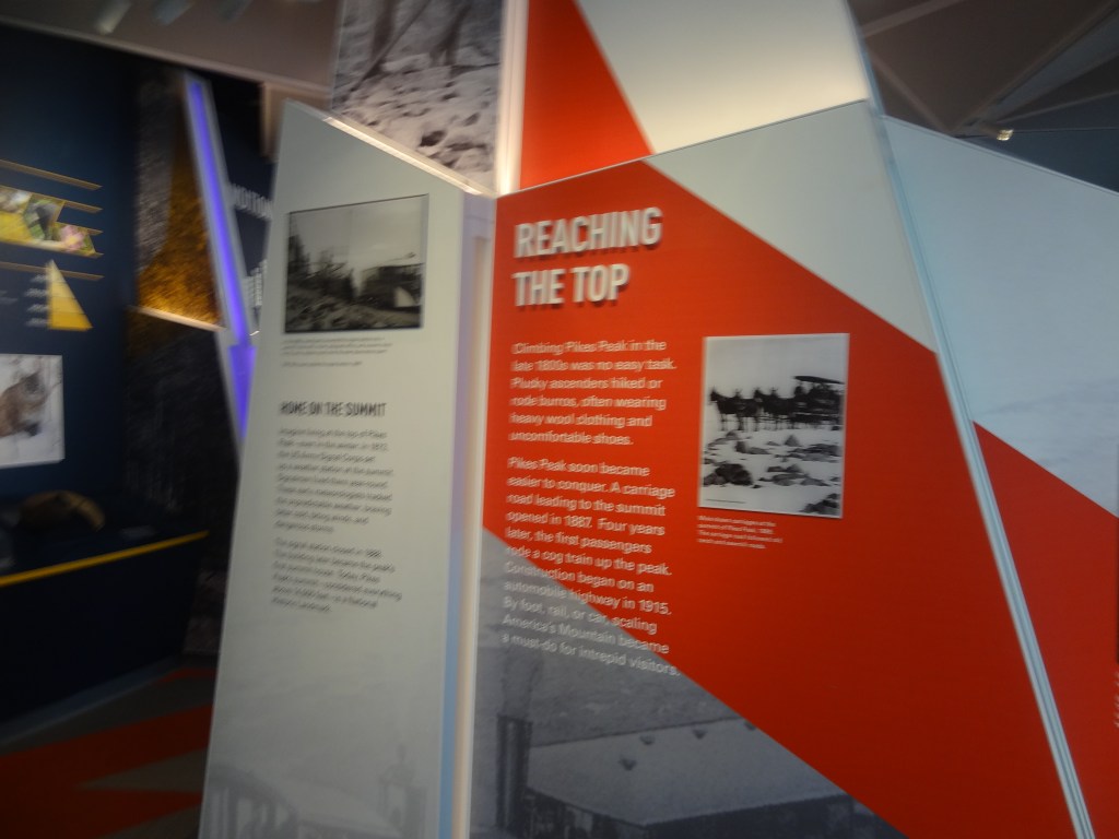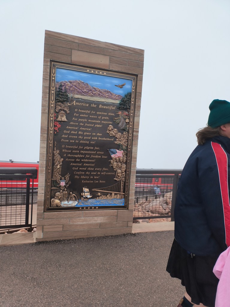We decided to explore more of the visitor center as clearly (clearly lol there was fog!!!!!) there was nothing for us to do outside. Spending quite a lot of time at the information exhibit, we got to know quite a lot about the history of Pikes Peak. I found out a lot about the native tribes there, races Pikes Peak hosted, some medical stuff about oxygen, comparisons with other mountains, as well as how it was the inspiration for Katharine Lee Bates, during an 1893 trip to Colorado Springs to write the poem “America the beautiful”.