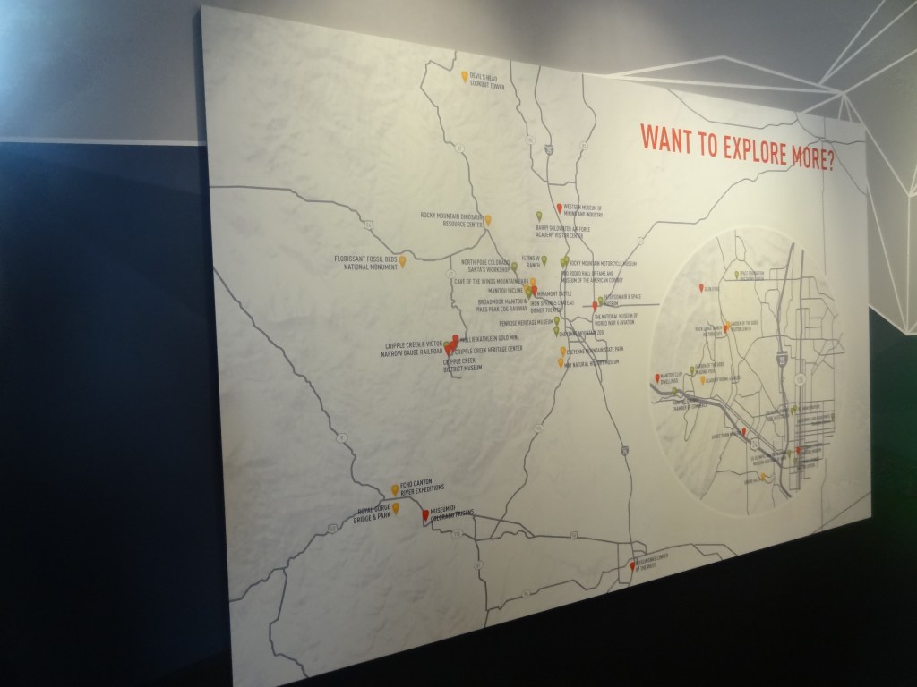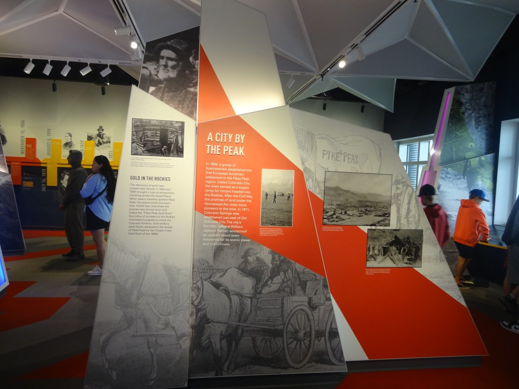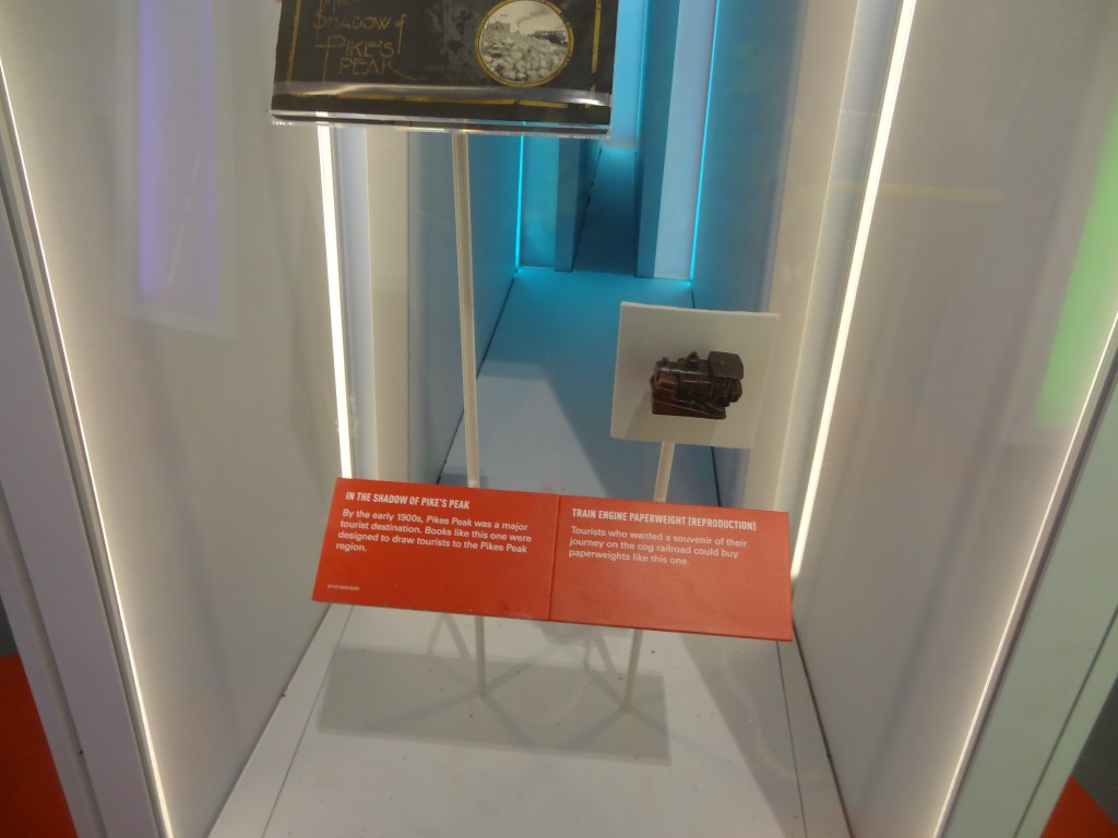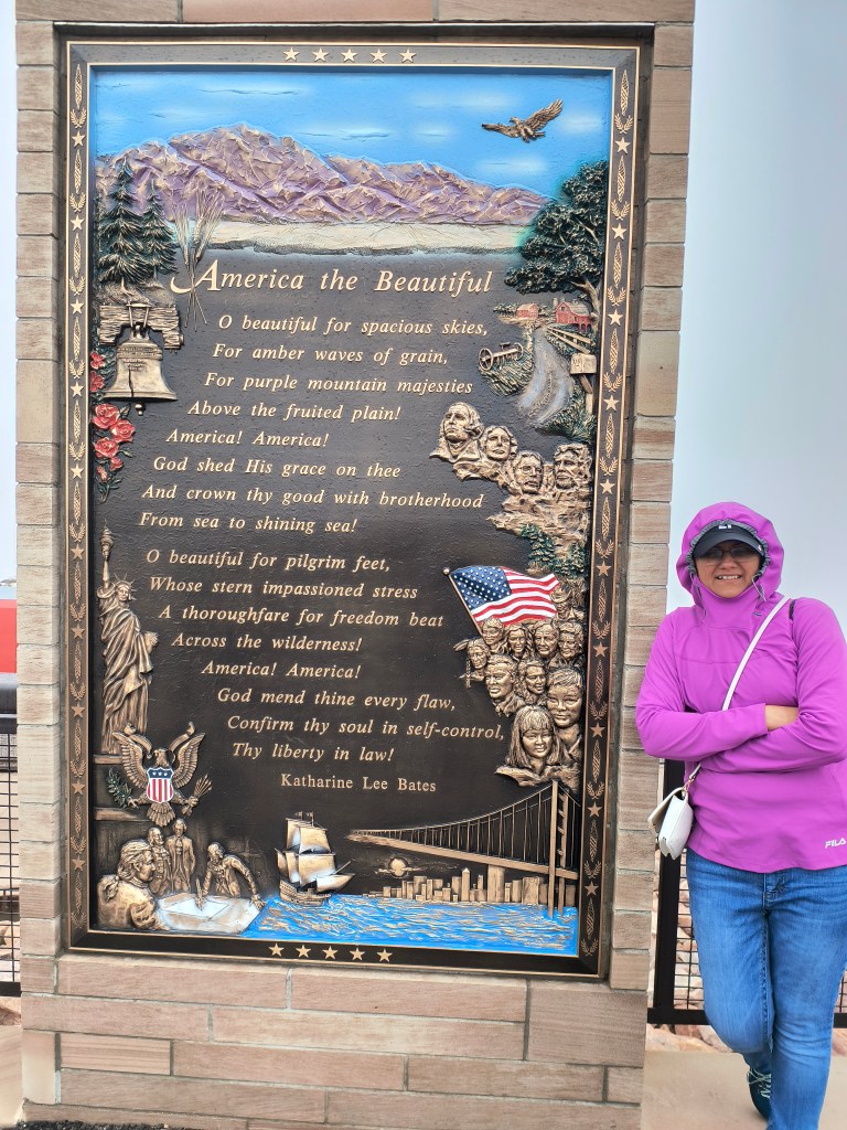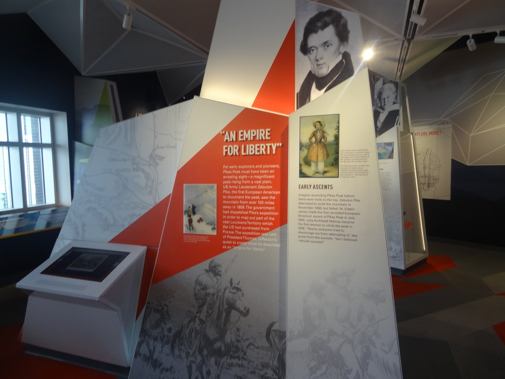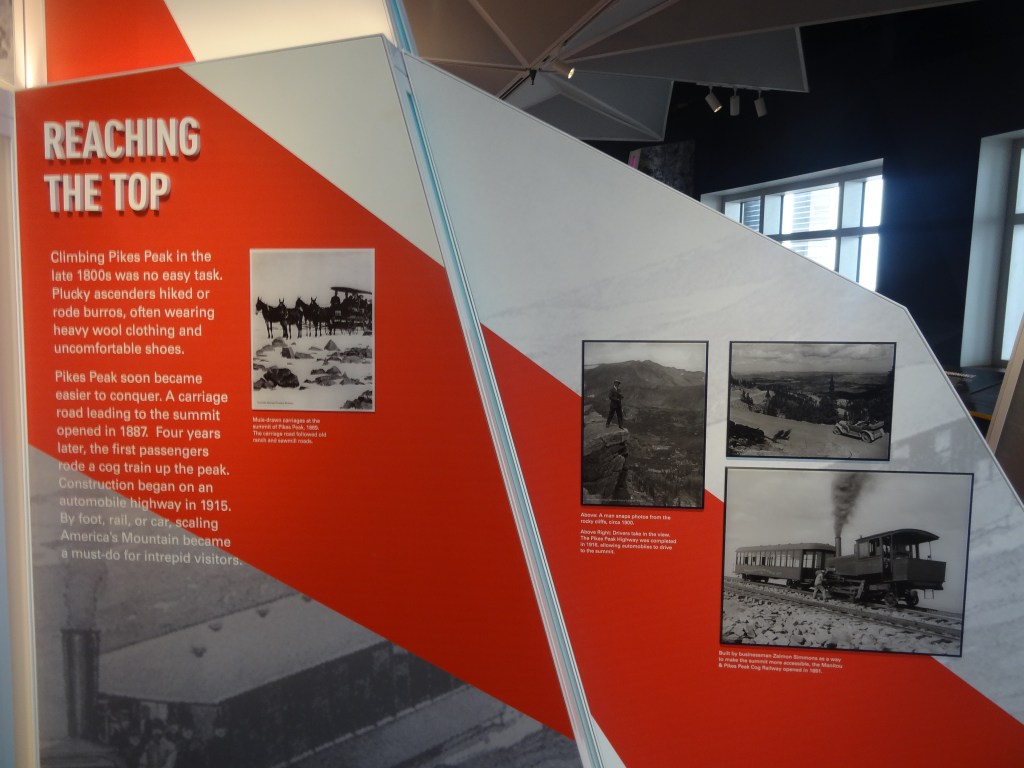 We decided to explore more of the visitor center as clearly (clearly lol there was fog!!!!!) there was nothing for us to do outside. Spending quite a lot of time at the information exhibit, we got to know quite a lot about the history of Pikes Peak. I found out a lot about the native tribes there, races Pikes Peak hosted, some medical stuff about oxygen, comparisons with other mountains, as well as how it was the inspiration for Katharine Lee Bates, during an 1893 trip to Colorado Springs to write the poem “America the beautiful”.