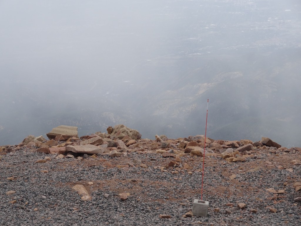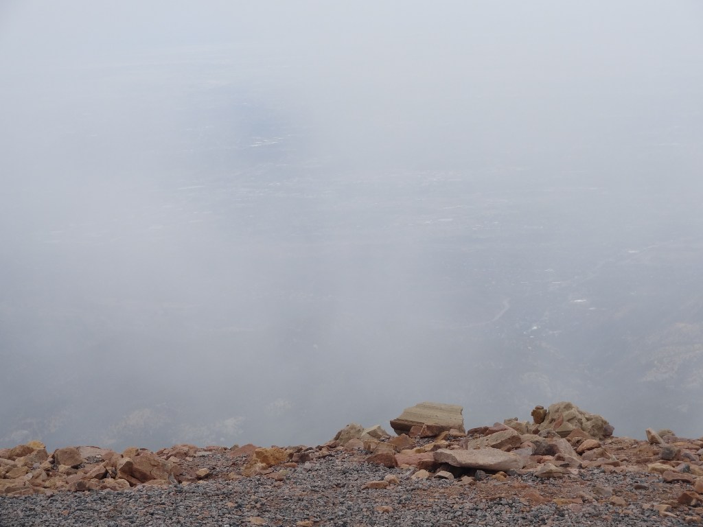 Do you remember how I said the weather changes drastically up here at the summit? Well, what was supposed to be a clear day, with no cloud in sight, was blanketed with a thick layer of cloud cover.