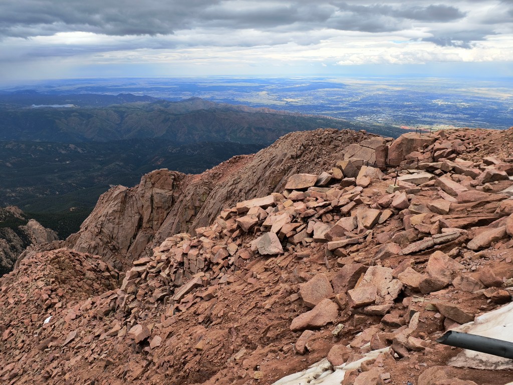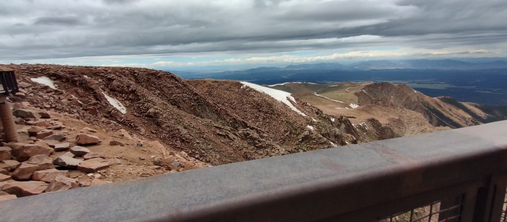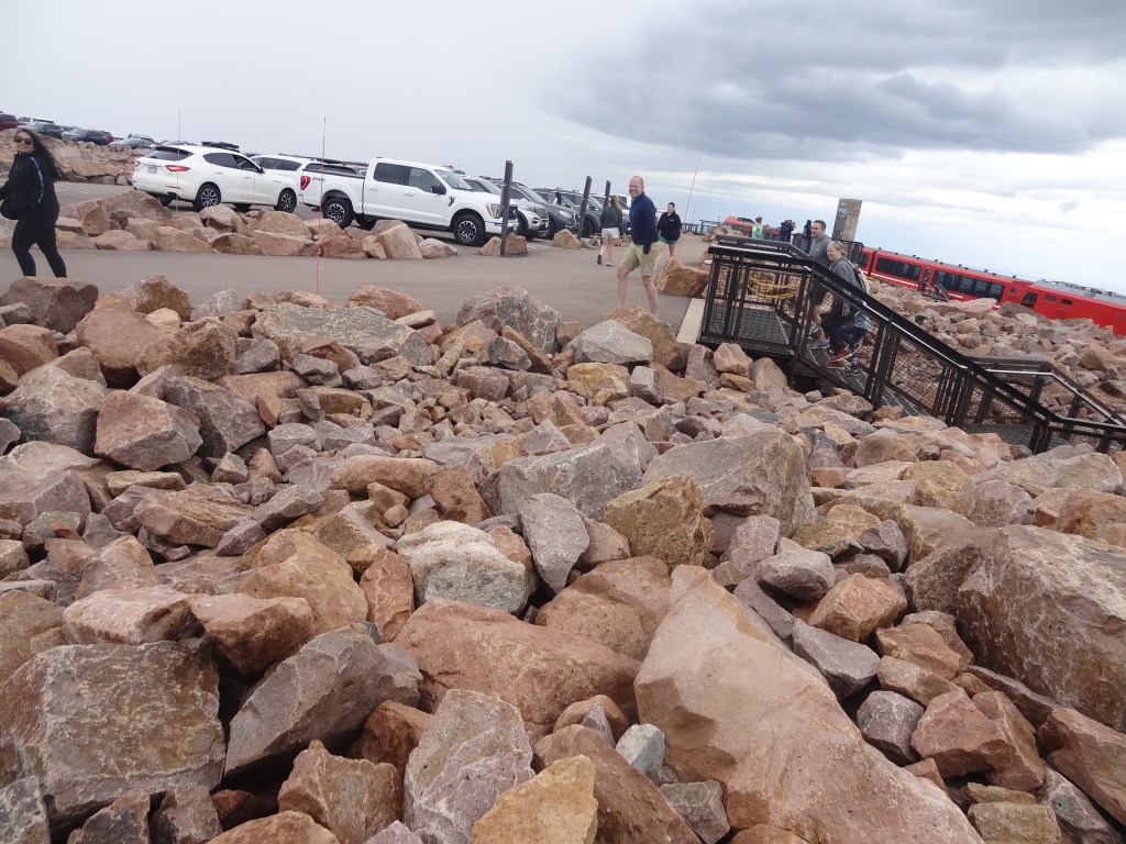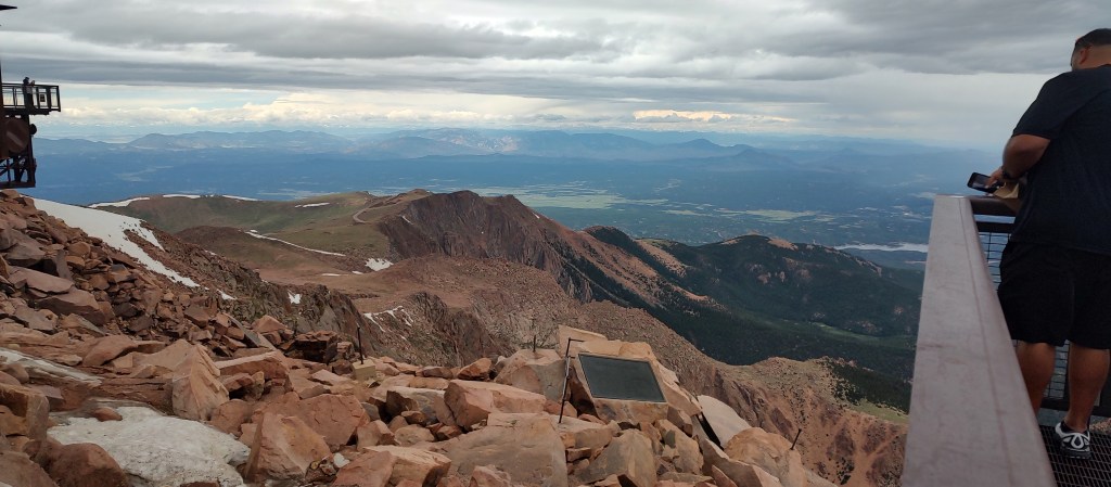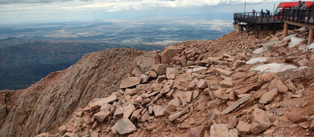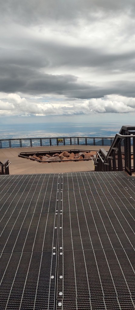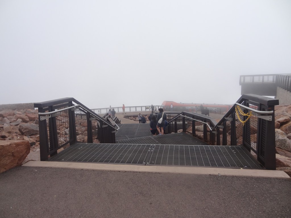 State of the art, grand as can be, was the huge visitor center. Vast like a mansion, there was an information exhibit, and cafeteria, a huge gift shop, restrooms, viewing decks, and THE Grand Staircase. Now the reason I say that is because it’s simply huge, welcoming you into the world of Pikes Peak’s summit. It was around 12 PM, lunchtime! Finding ourselves a table in the cafeteria, we started to eat food my mom packed for the trip, admiring the visitor center and thinking about our time outside, exploring the peak…