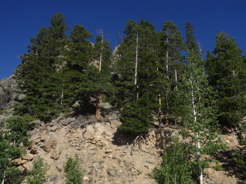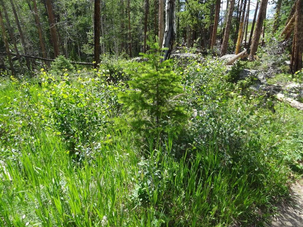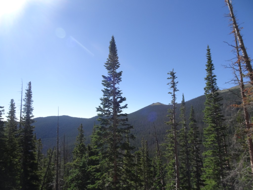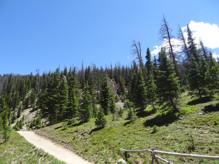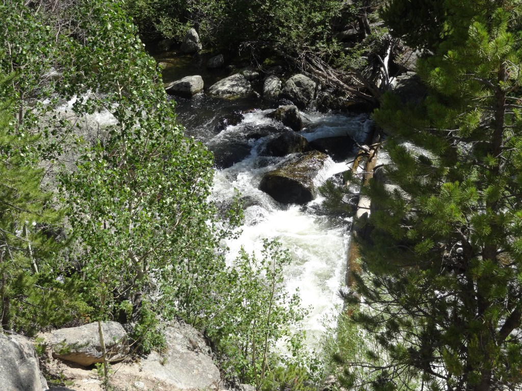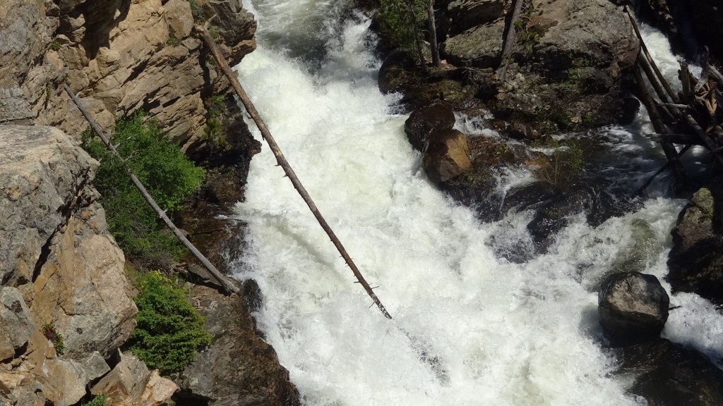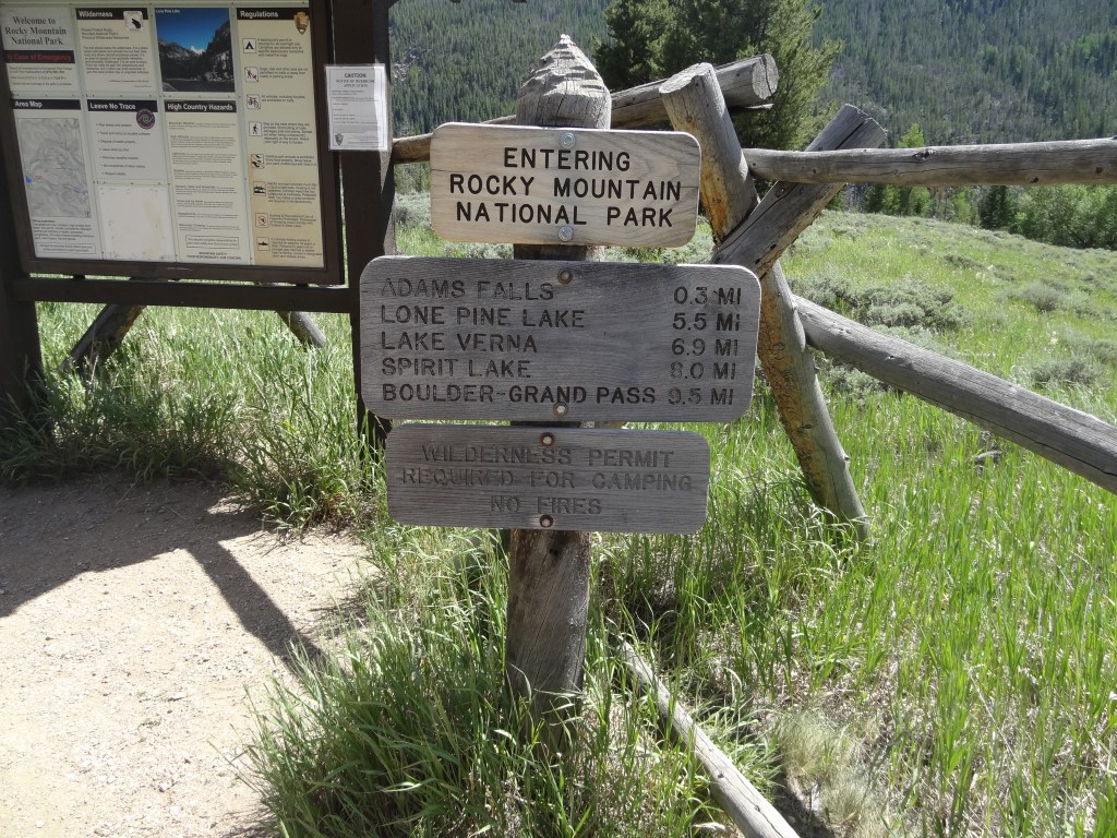 Turns out there was a trail there that started near Grand Lake. Setting out on the East Inlet Trail, we ventured off to see Adams Falls. It was a 2-mile round trip on a forest-like trail, with leafy trees and pines separated by a rocky path. A clearing opened up to a bumpy area surrounded by trees, with the sound of rushing water. There it was, Adams Falls!