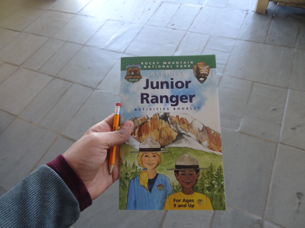 Inside the warm, wood building, the rangers were all busy answering questions about the area. My sister and I got in line to wait our turn and asked if we could be Junior Rangers. The ranger smiled and handed us our booklets and badges, saying that we could complete the booklet in our own time later. We took the pledge and boom, we were official RMNP Junior Rangers. My sister and I decided to finish our booklets, and as we did, there was a little ranger activity going on.