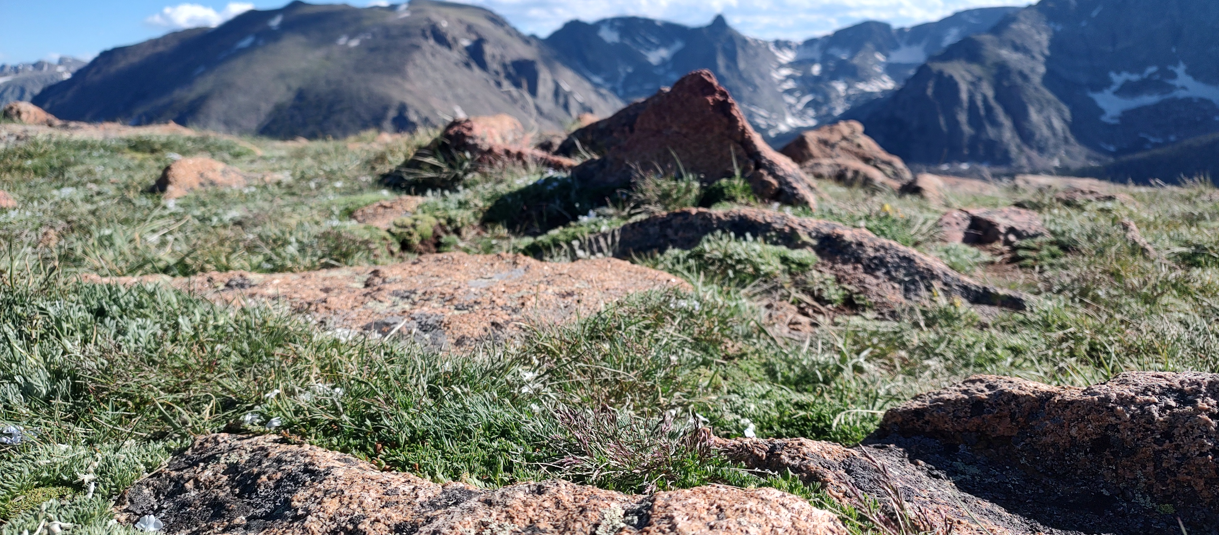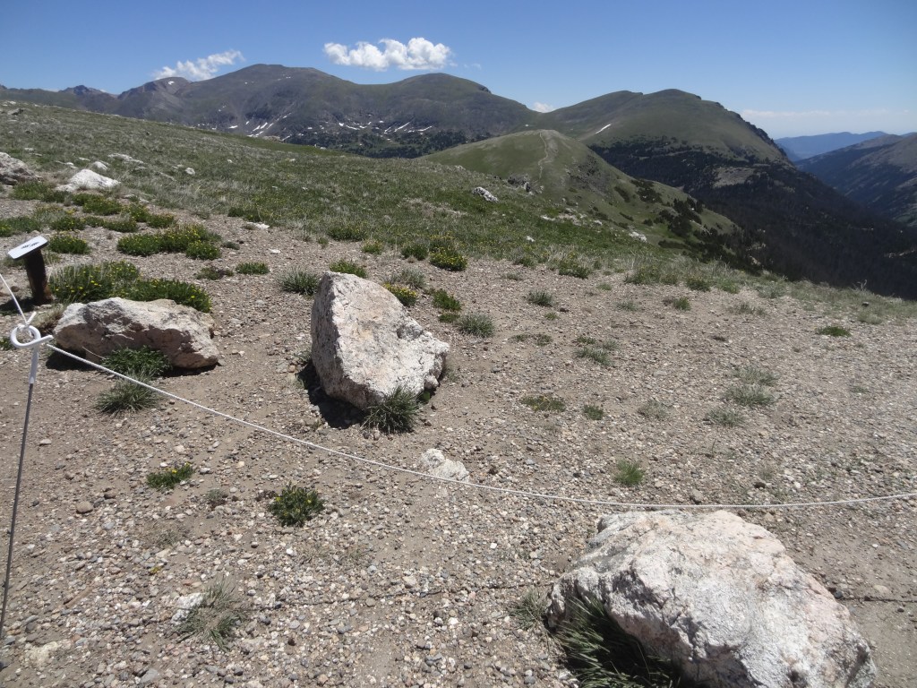 Views of the surrounding snow-capped mountain peaks were just amazing. The alpine tundra ecosystem was fenced off, but the small plants looked really pretty. The reason it was fenced off was because the vegetation took a long time to grow in the tundra, partially because of the growing conditions as well as because of being packed by snow for most of the year.