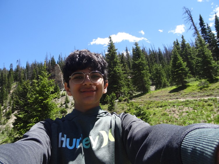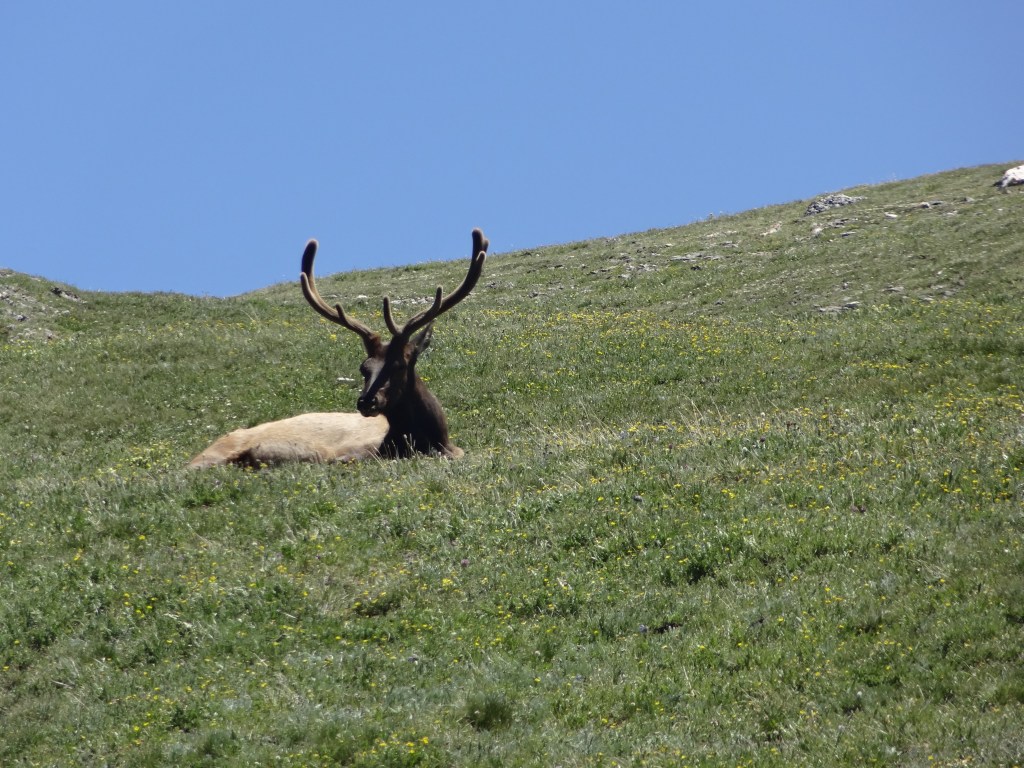 Coming down from the climb, we decided to stand over the curb on a scenic view, when I suddenly saw: ELK!!! Racing over for closer observation, our family had fun looking at the elk. At first, they were sleeping, but after a while, I started singing about the elk and how he should get up, and soon enough we got to see the male lift up his head and pose for a picture. Now I don’t know if I am an animal wizard or not, but I don’t know how that elk sensed my calling. What a sighting. Time to head back onto the road.
