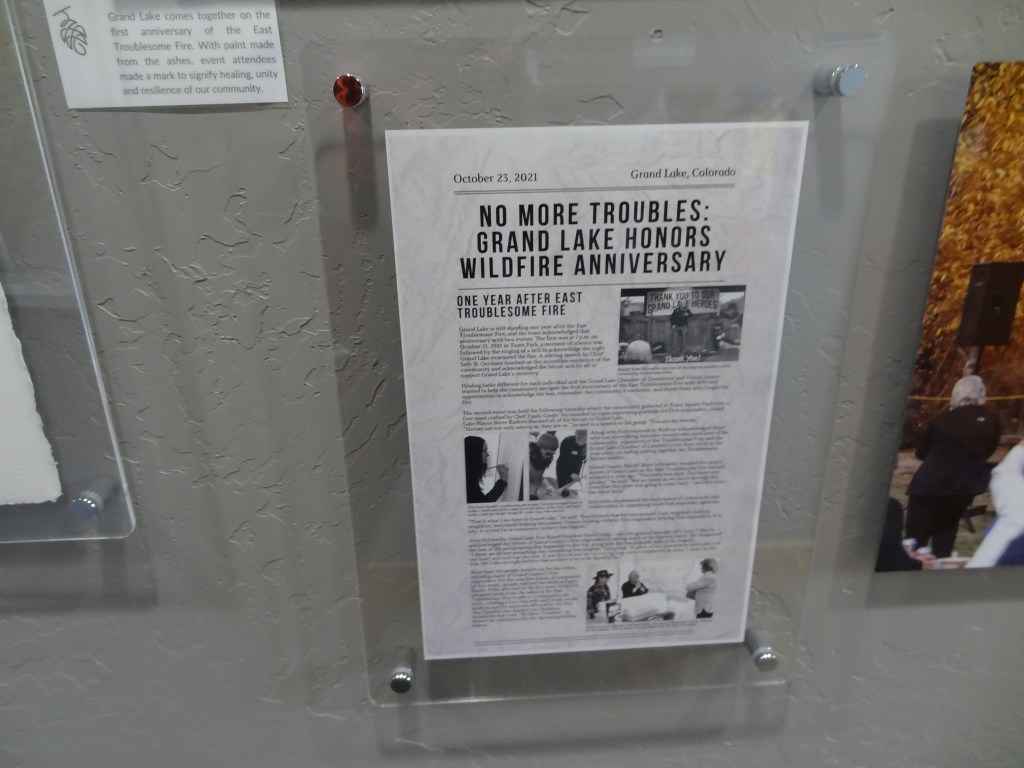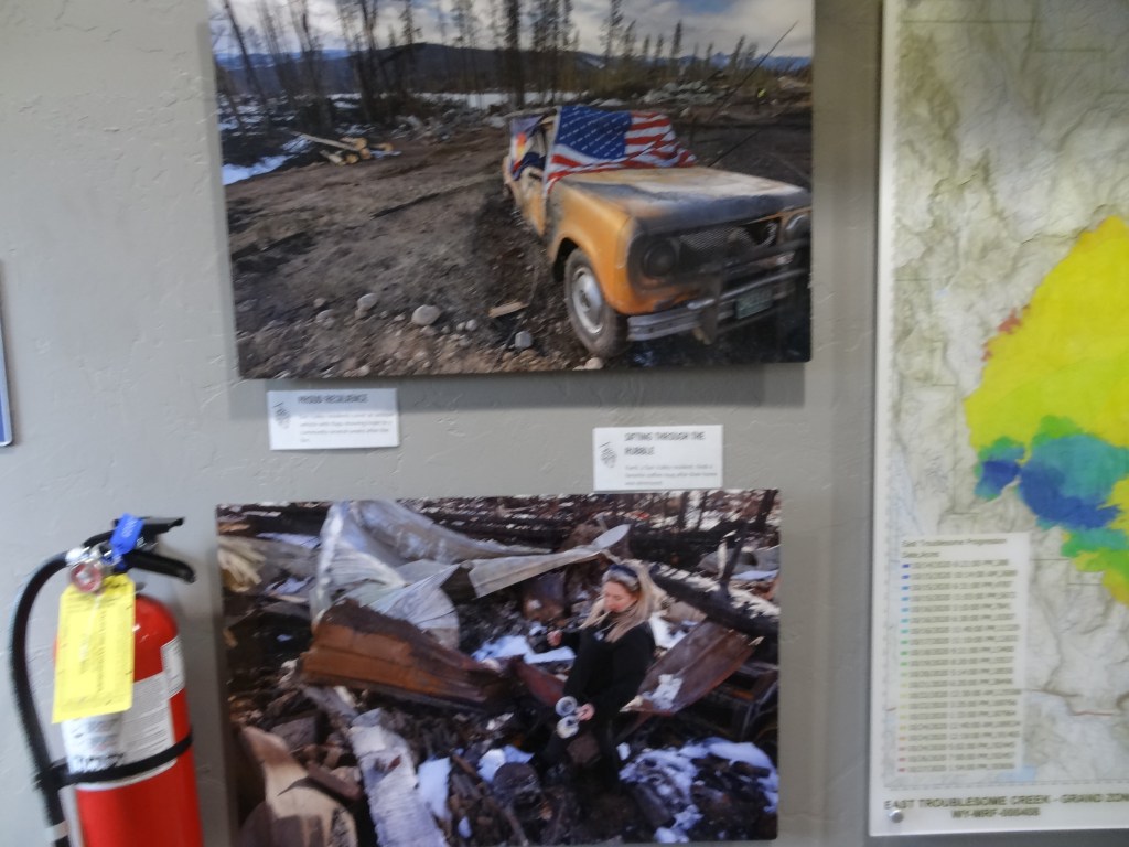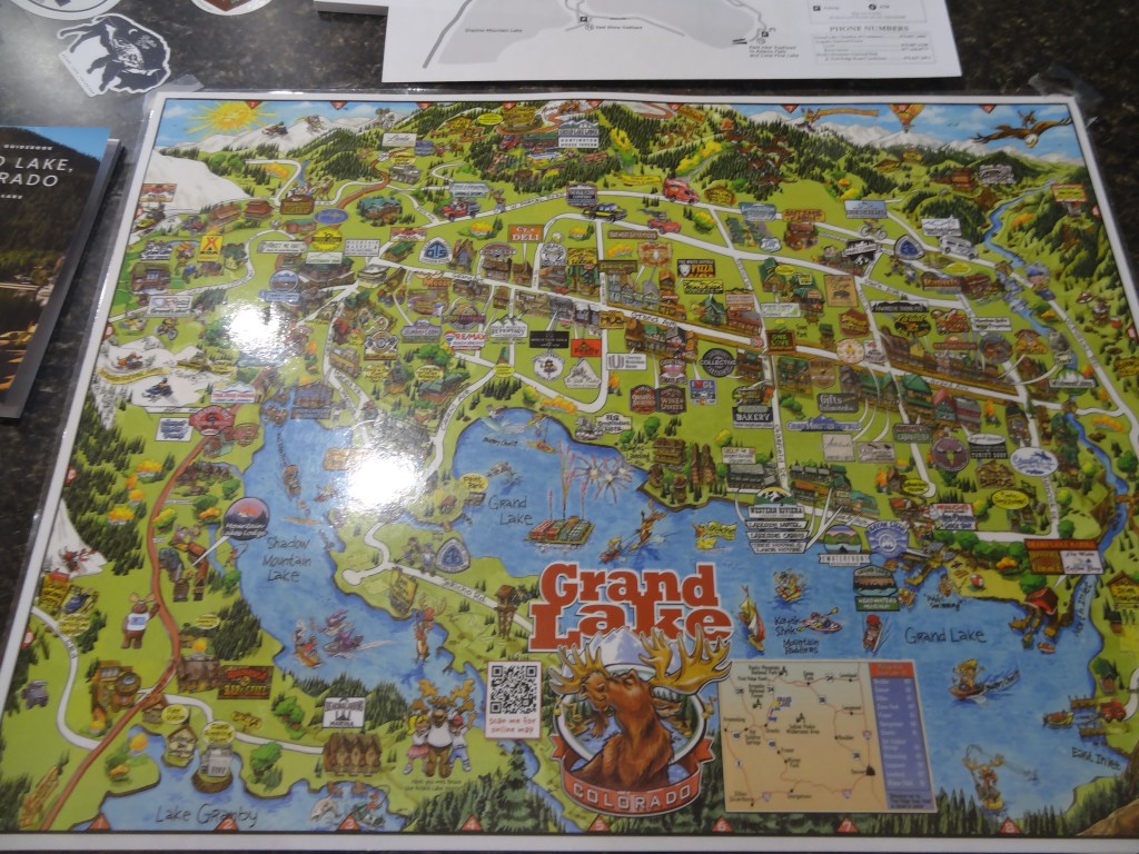 After we passed the Kawuneeche Visitor Center, we were officially in Grand Lake, CO. We took a stop to see what was in Grand Lake by the Grand Lake Visitor Center. My dad and I went inside, and we were greeted by the ranger, who told us about Grand Lake, kindly gave us maps, and invited us to the fireworks show tomorrow at Grand Lake. I also got to know about the Grand Lake Fire. The fire, which started on Oct. 14, 2020, scorched 193,812 acres which is about 302 square miles, in Grand County, charring various areas in Grand Lake, Rocky Mountain National Park, and the edges of Estes Park. I guess that explains the charred trees.